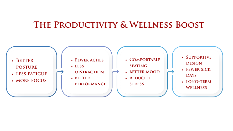 So, the next time you feel that nagging backache or post-lunch slump, take a look at your chair. It might just be the reason your performance—and health—isn’t where it should be.
