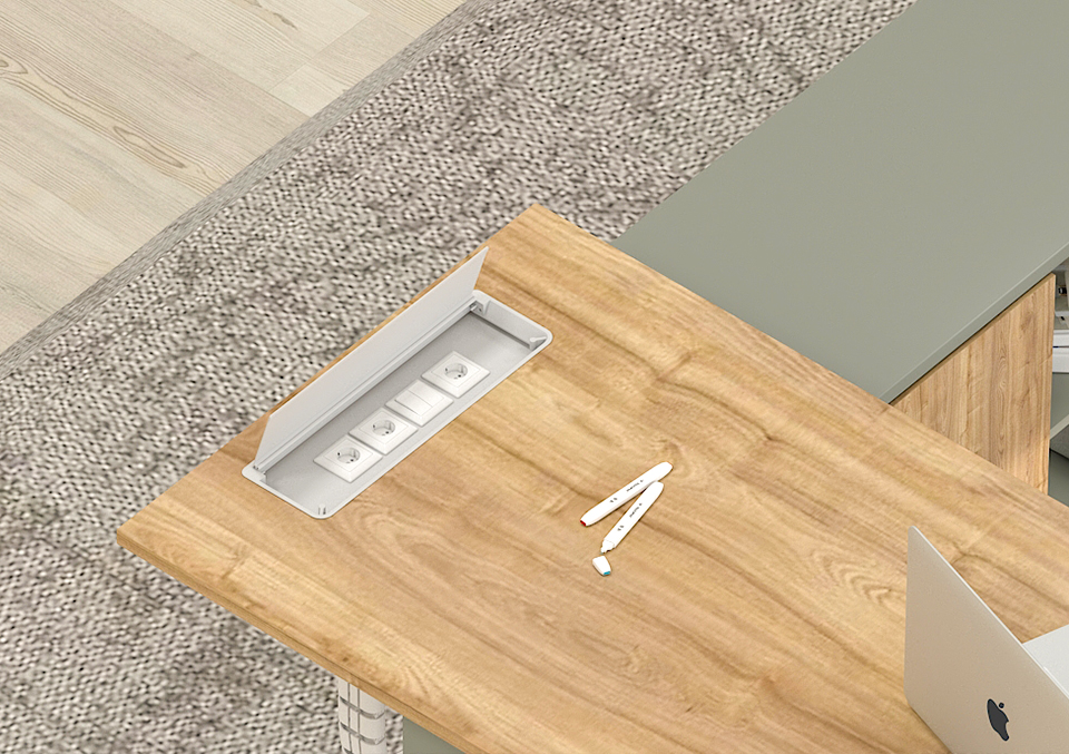 Smartly placed power access keeps devices connected and your workspace clutter-free
