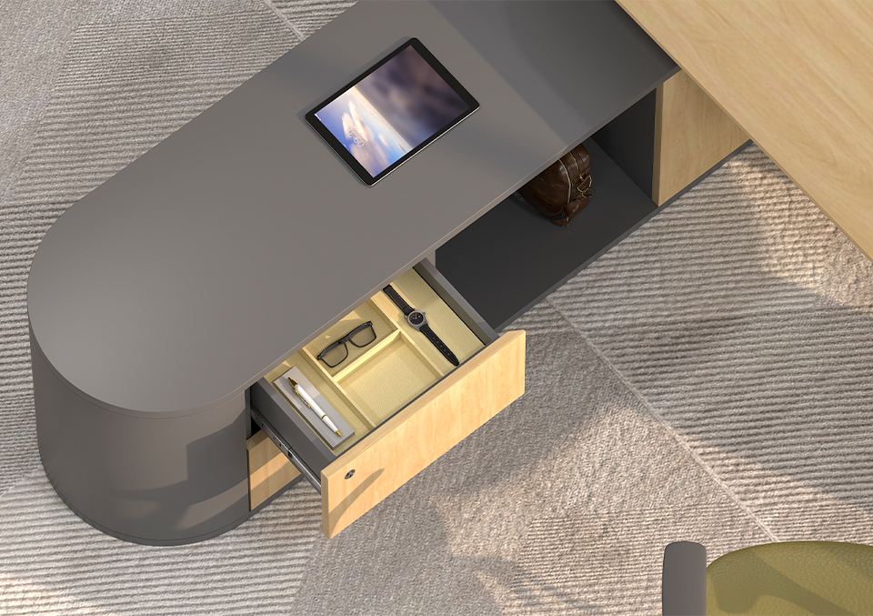 Opus brings harmony to the executive workspace through its flowing form, refined details, and intelligent design—where aesthetics meet purpose, and every curve speaks of quiet authority