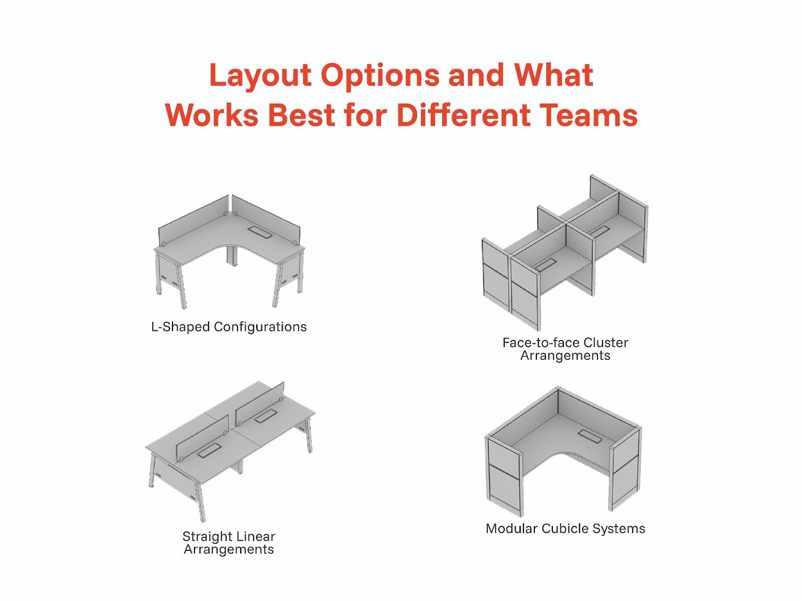 Modular cubicle systems support a range of spatial configurations, each with distinct advantages for specific working styles and team structures.