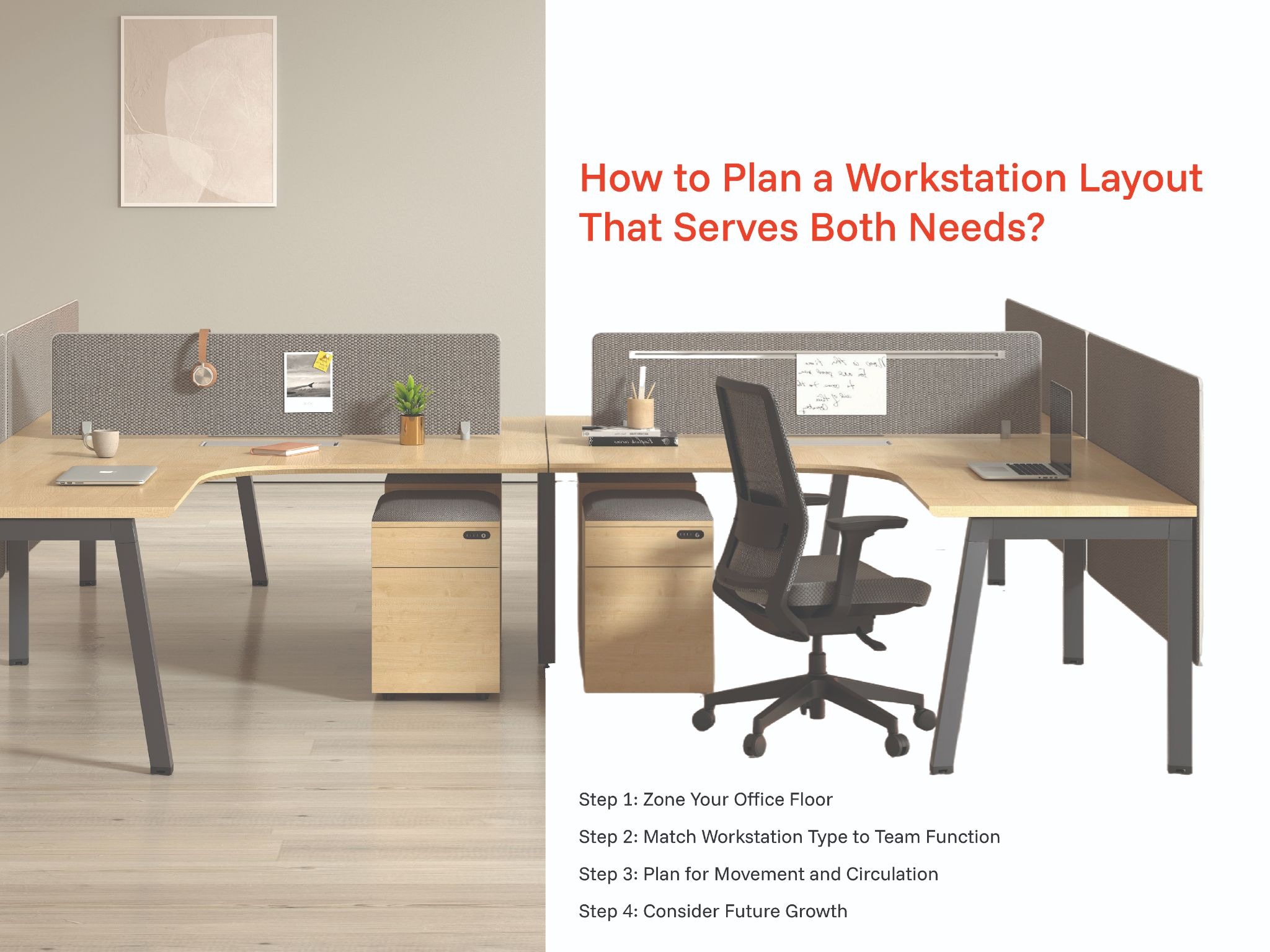 Start with a clear floor plan and identify which teams will occupy which areas. Group teams with similar working styles together so that the workstation configuration in each zone matches the actual working needs of the people in it.