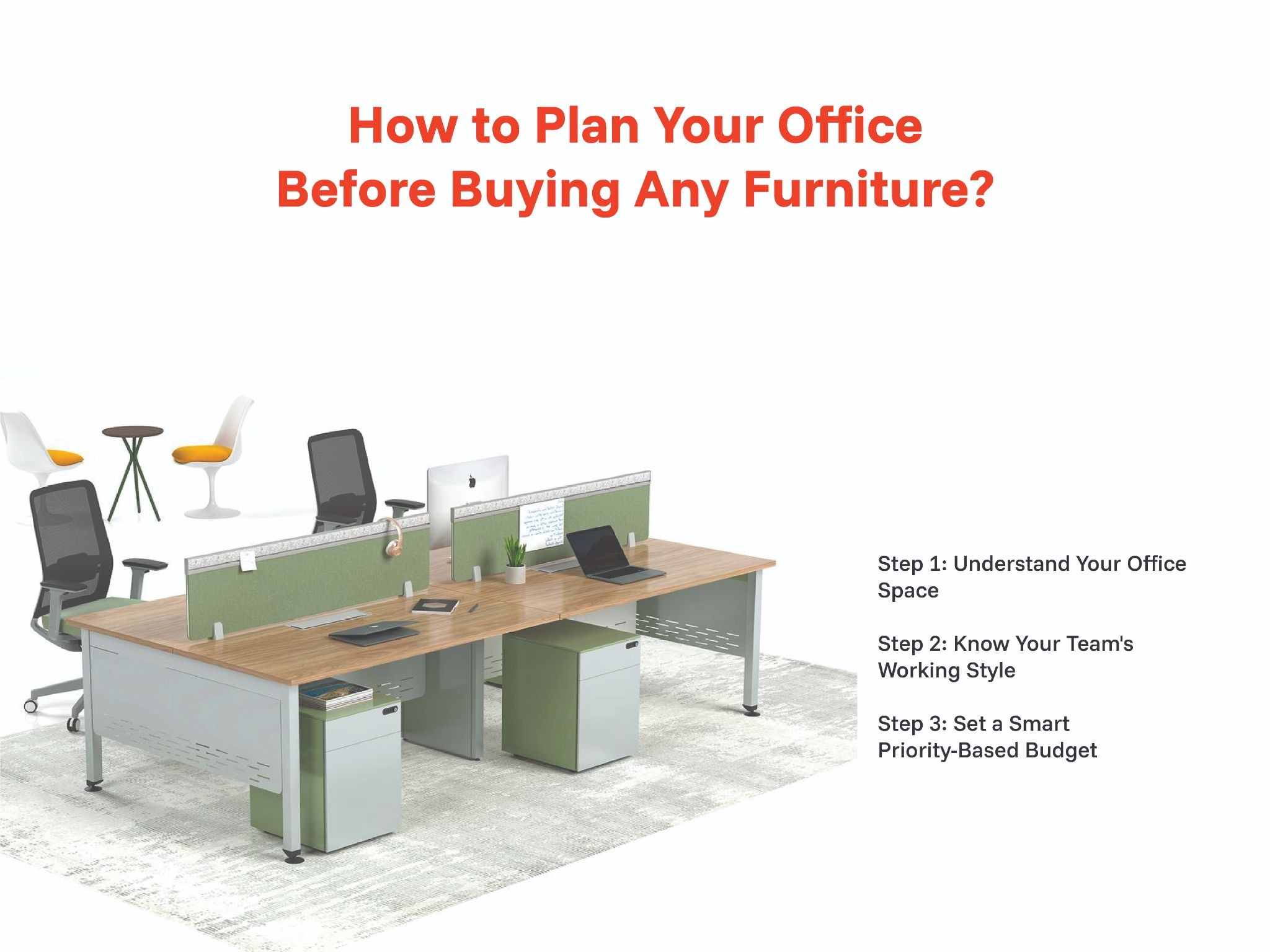 Purchasing furniture before the floor plan is finalised leads to sizing mismatches, blocked emergency exits, and layouts that do not reflect how the team actually works.