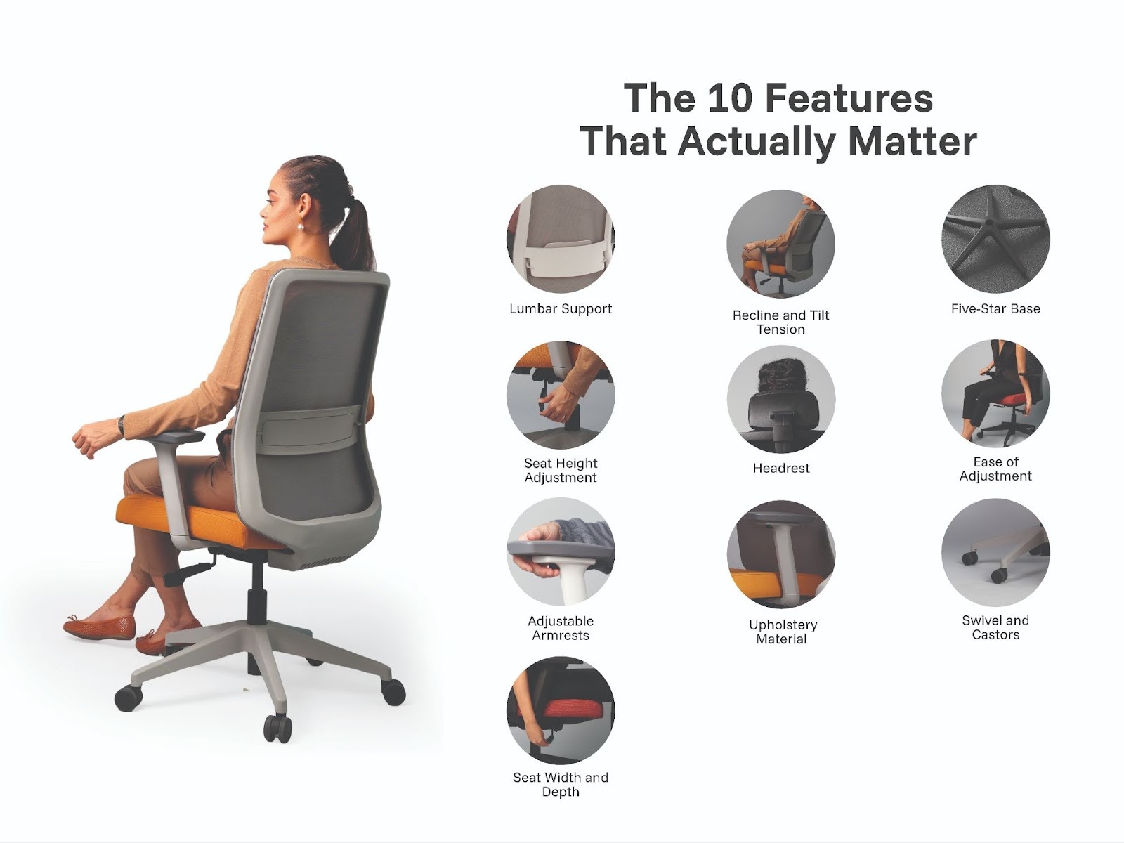 When evaluating any ergonomic chair, the following ten specifications determine whether it will genuinely support your health over years of daily use or simply look the part.