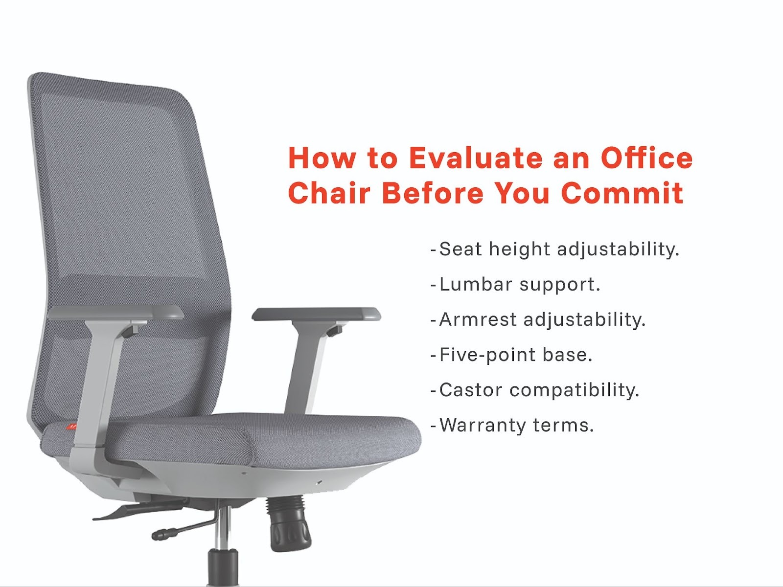 A chair that looks impressive in a photograph or showroom display does not necessarily deliver the ergonomic support required for a full working day. Always evaluate a chair by sitting in it for at least fifteen minutes and testing every adjustment mechanism.