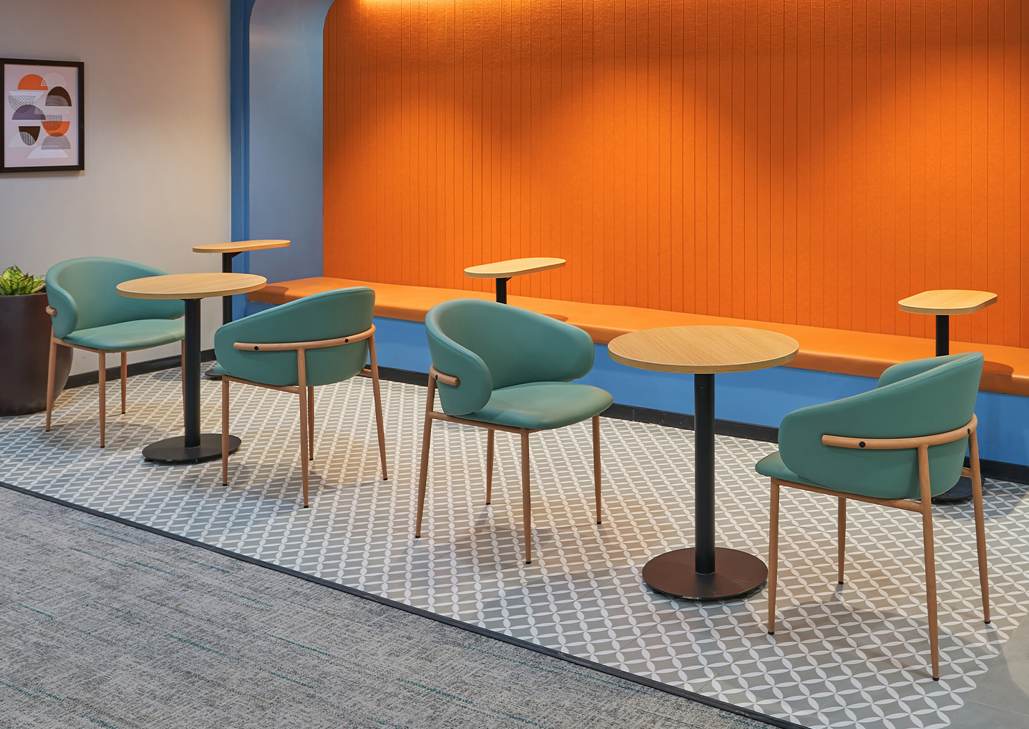 The semi-curved back with padded side wings offers a gentle embrace, delivering improved lateral support and a relaxed seating feel ideal for long conversations.