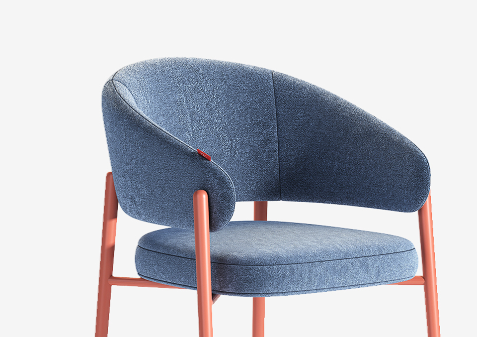 This chair pairs a plush curved backrest with vibrant metal legs, creating a stylish, contemporary look. Comfortable, lightweight, and durable—perfect for cafés, lounges, and modern interior spaces.