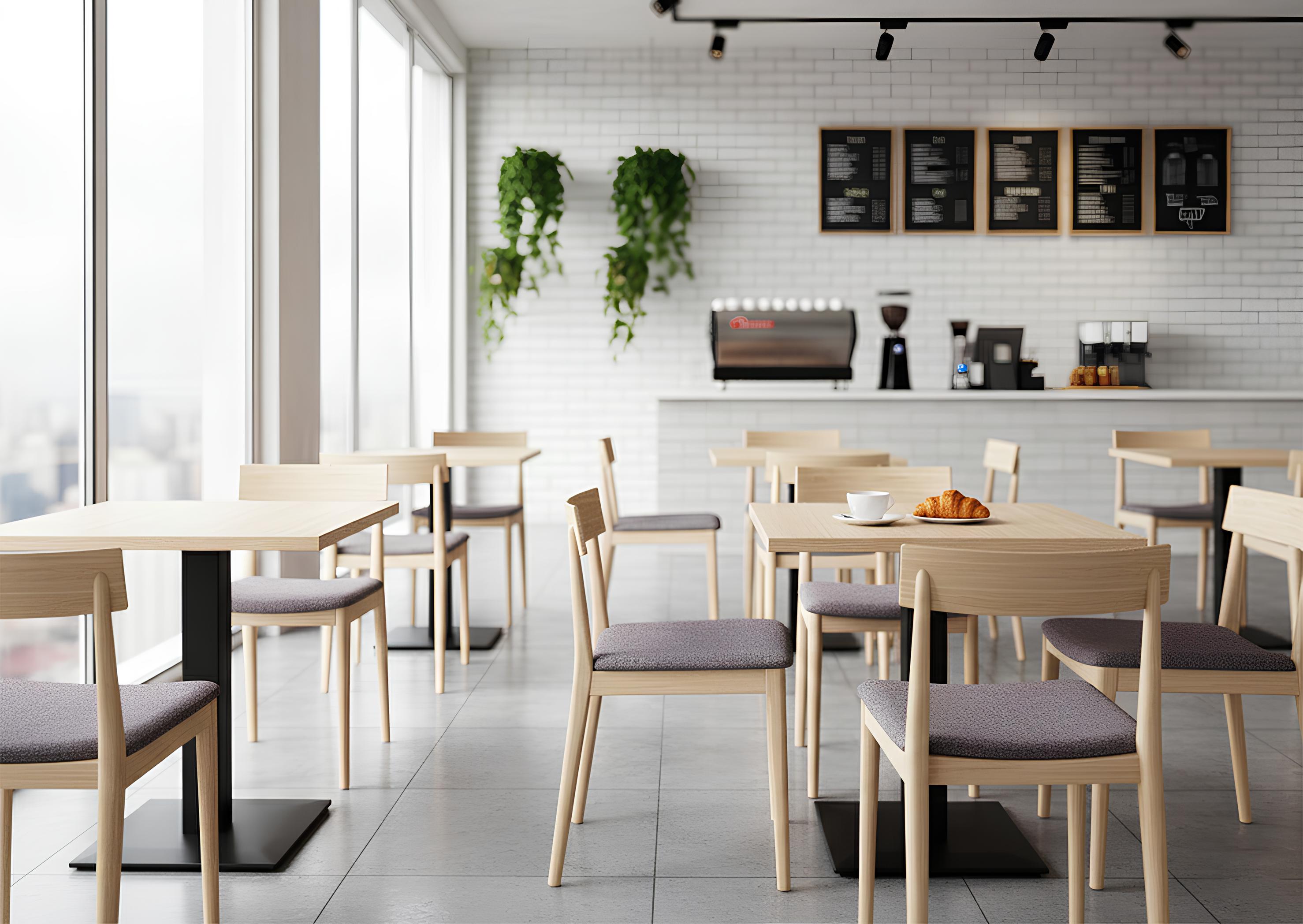 Arvo celebrates the beauty of solid hardwood through precise craftsmanship and balanced proportions. Its clean structure highlights authenticity and warm materiality, bringing a naturally refined presence to any café or dining environment.