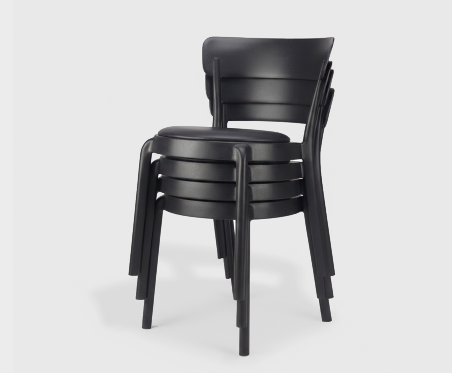 This brim back café chair features a smooth, curved backrest and a sturdy rounded seat, offering comfort with a clean, modern look.
