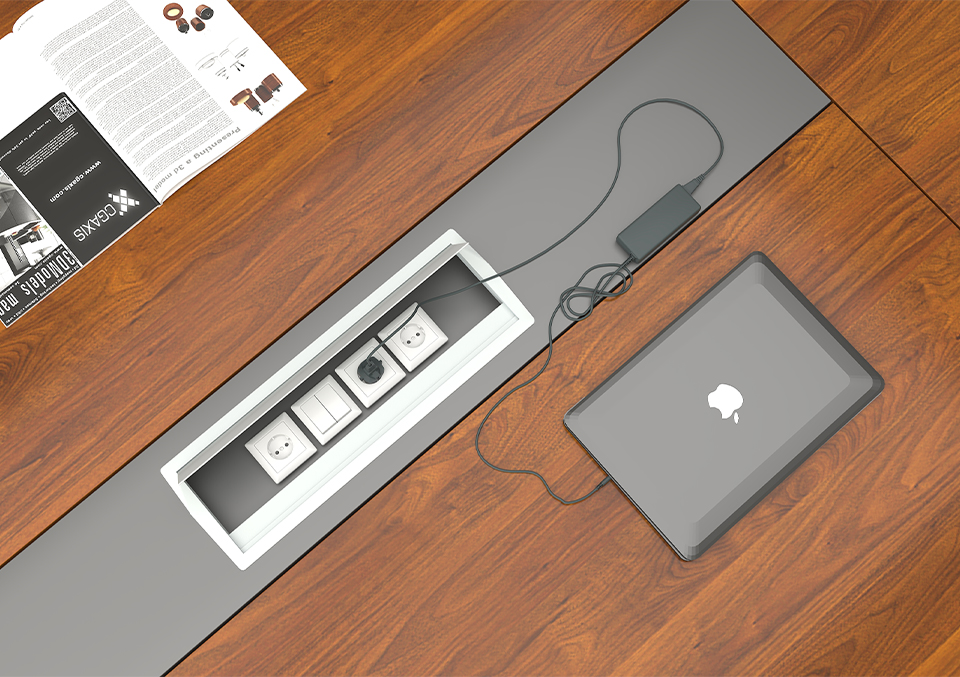 Smart fliptop access keeps cables tidy and hidden, maintaining a clean, professional workspace.