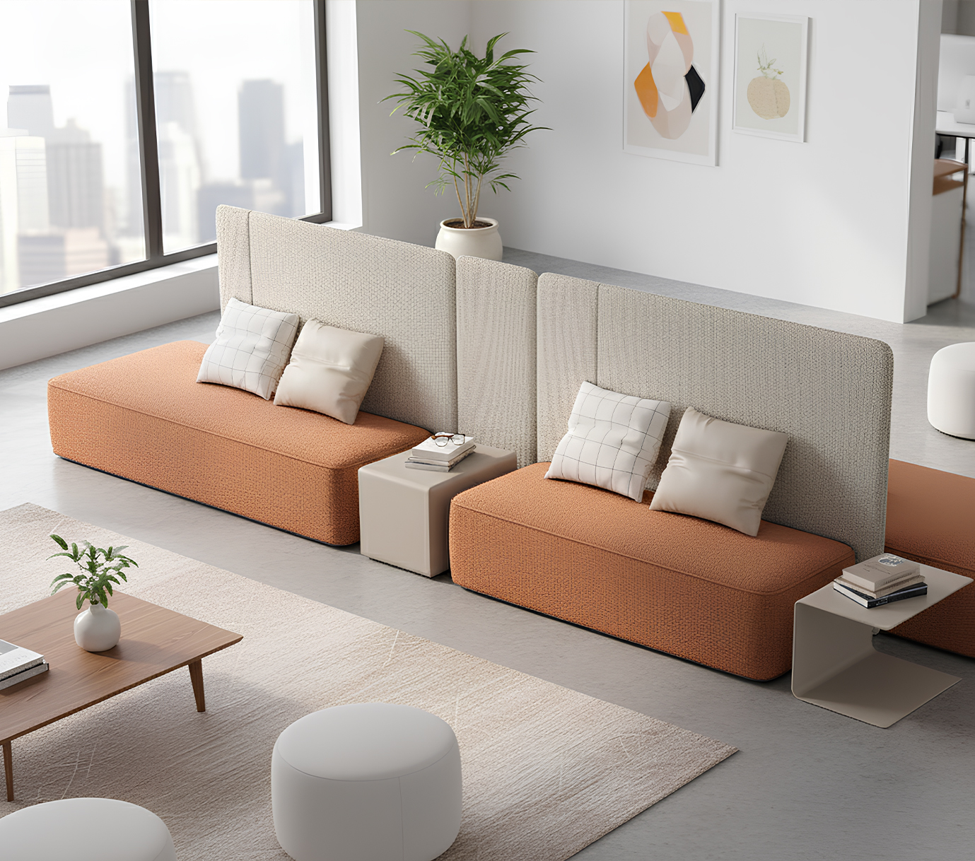 Small easy chairs and sofas with single or dual-colour upholstery offer a customised look and enhanced comfort, while adaptable configurations allow both compact and expansive seating arrangements to suit diverse space requirements.