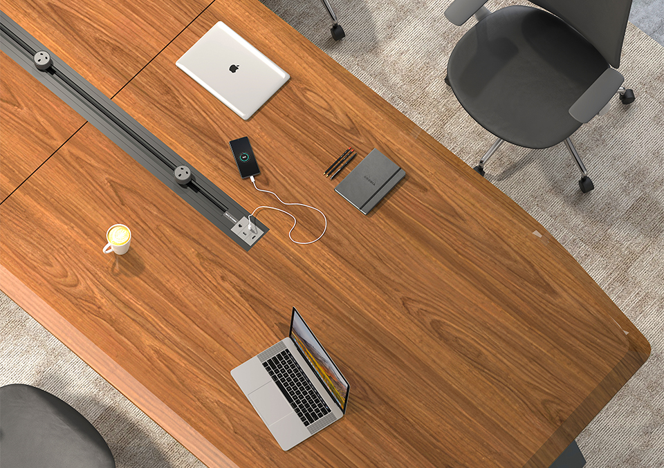 Flexible access to power and data through the work surface or power beam, keeping the workspace clean and clutter-free.