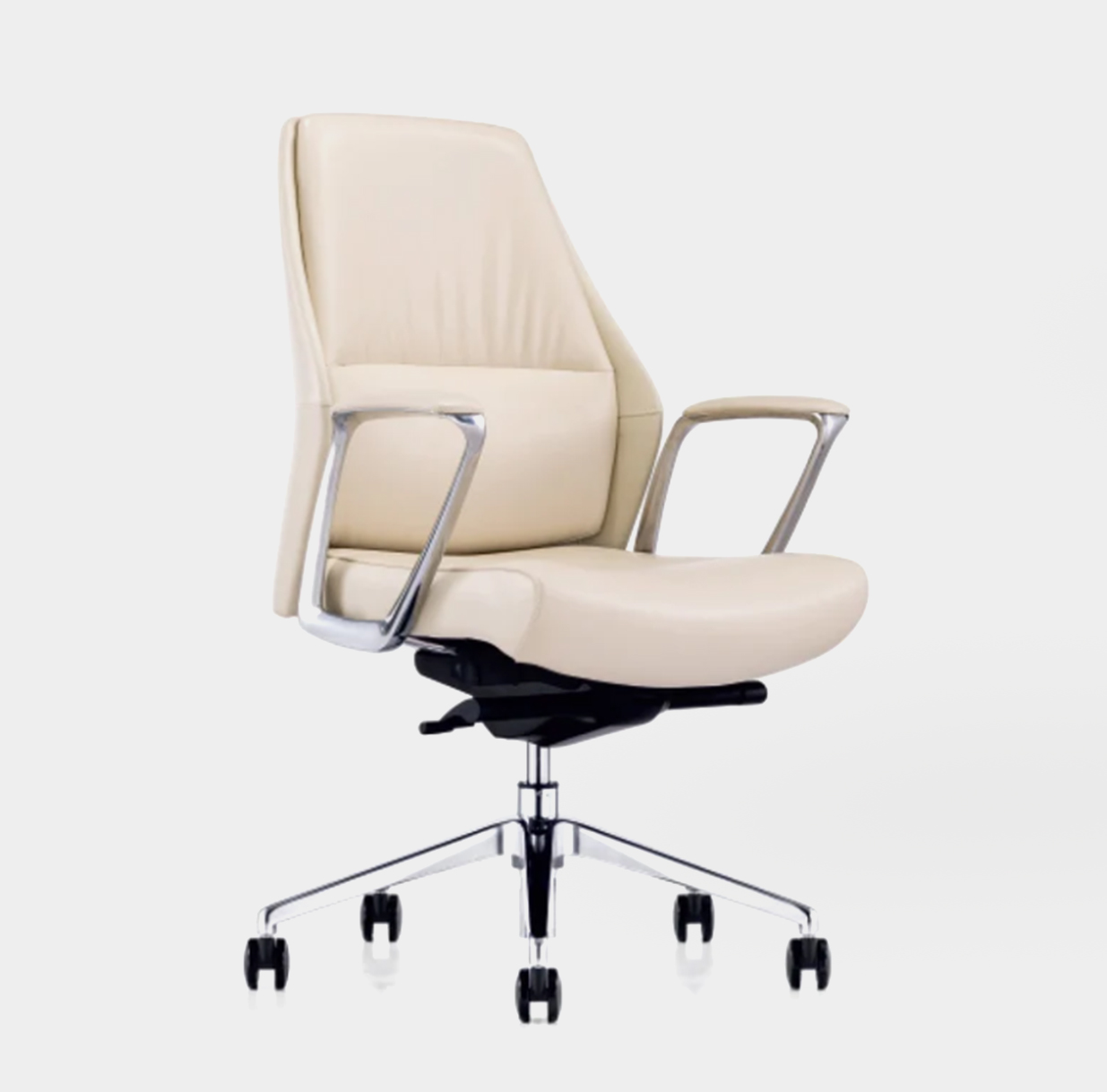 Defined by clean lines and a softly contoured form, this premium leather chair brings understated sophistication to contemporary offices. The seamless upholstery and refined proportions create a calm, confident visual presence