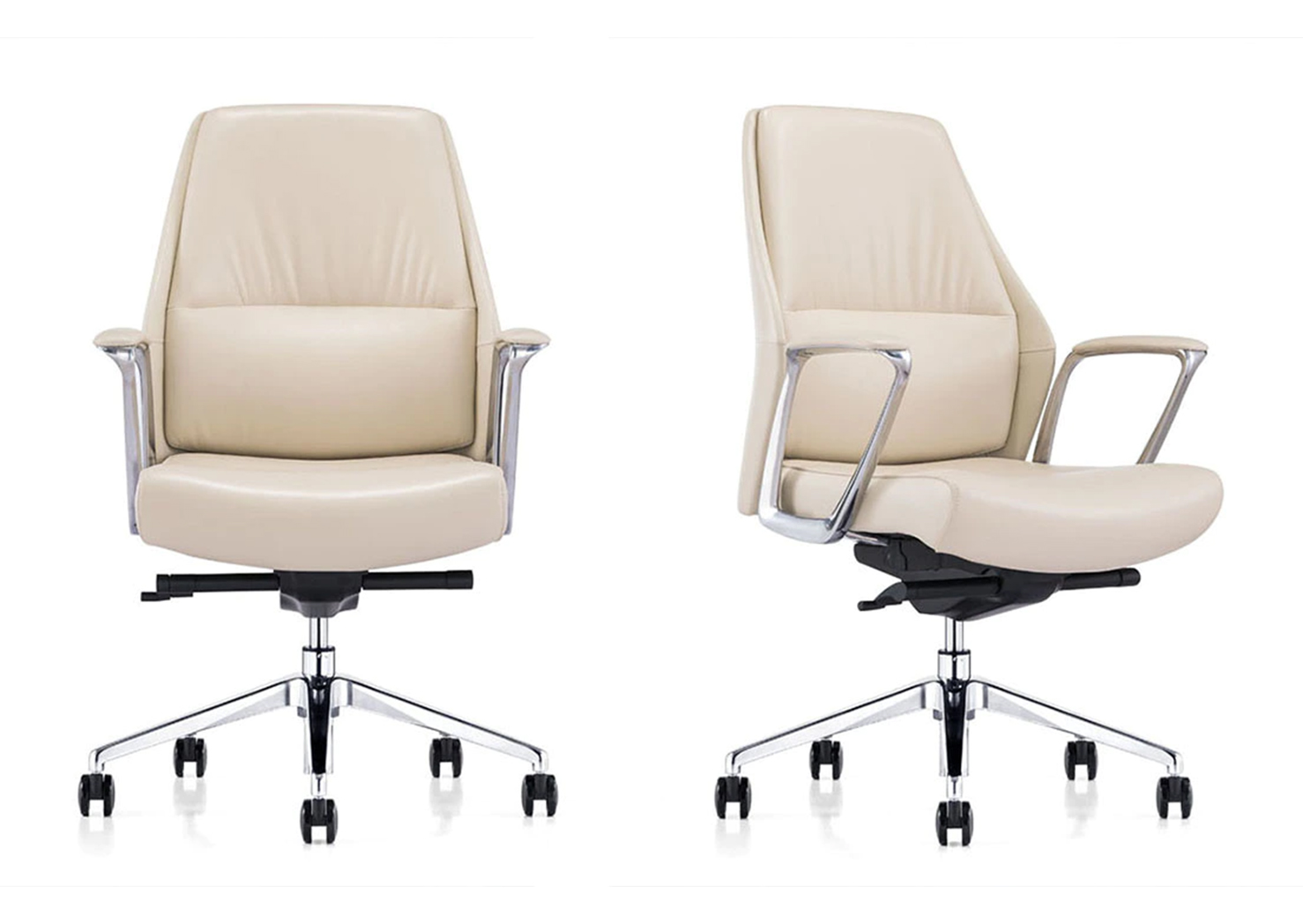 Soft premium leather upholstery with generous padding delivers superior seating comfort, combining visual elegance with a plush, supportive feel throughout the day.