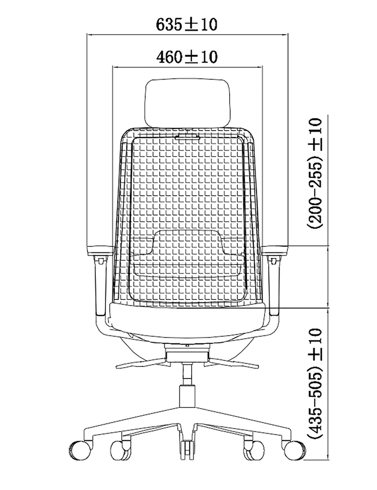 Overall height (with headrest): 1165–1235 ±10 mm