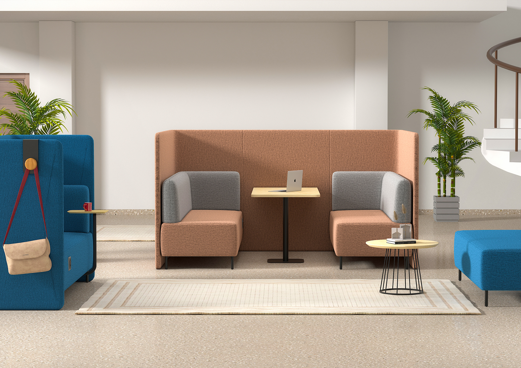 Adaptable to diverse workstyles, PADORA transitions effortlessly between open lounges for collaboration, enclosed setups for focused work, and clustered arrangements for team zones. Integrated nook seating offers dedicated spaces for solo tasks or casual breaks.