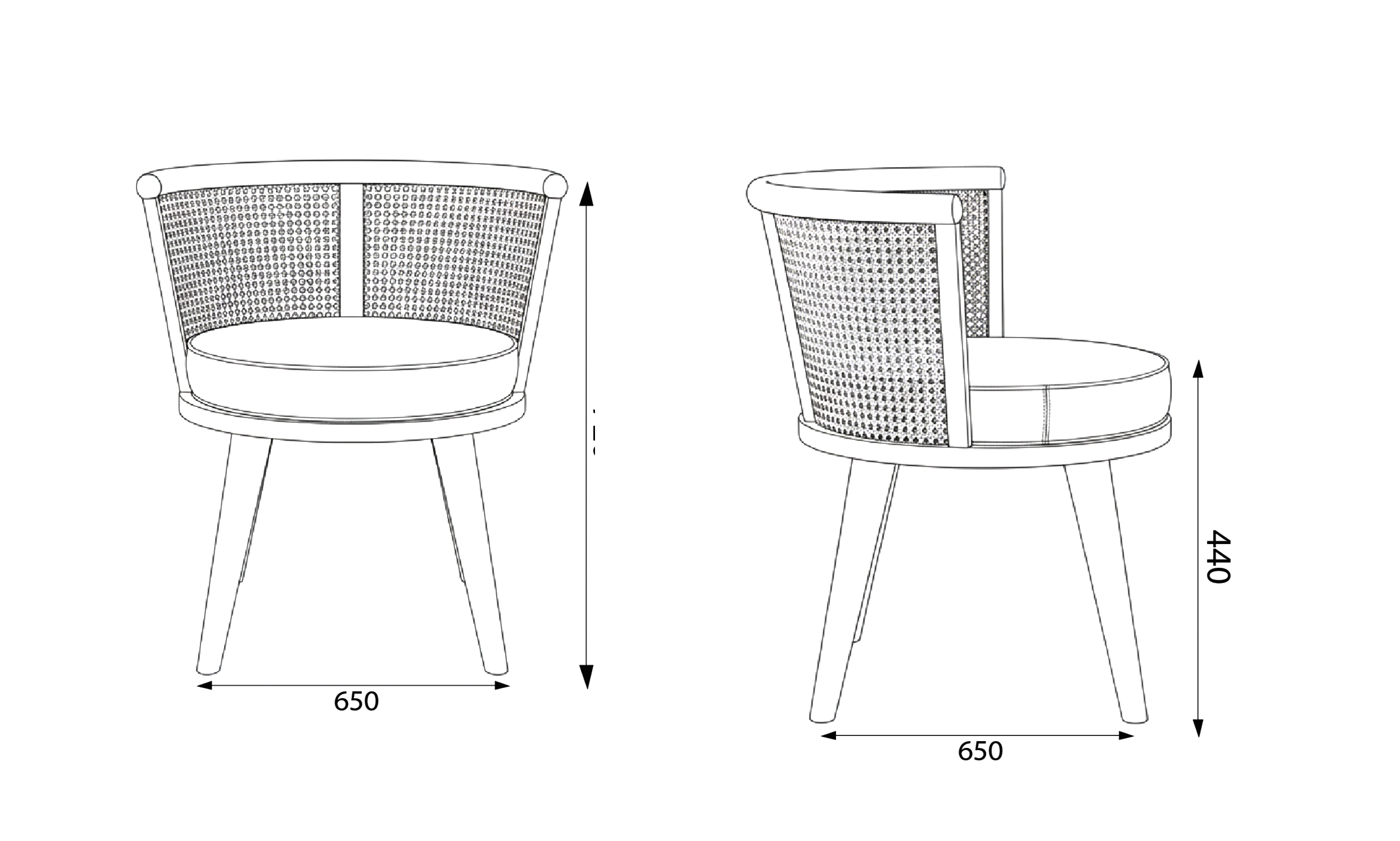 This chair pairs a hand woven cane back with a smooth round seat and solid wooden legs, creating an airy yet refined look. Comfortable, stylish, and versatile—perfect for enhancing lounges, cafés, and contemporary interior spaces in any brochure showcase.