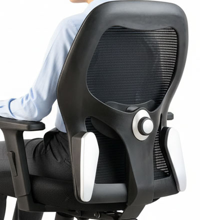 A built-in adjustable lumbar contour promotes better spinal alignment, offering steady lower back support during long sitting sessions
